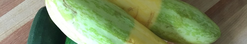 Our CSA share has provided an abundance of squashes for the last two weeks: zucchini, summer squash, crookneck, patty pan, and a beautiful, large green one with striped skin, pumpkin-like seeds, and pale flesh. (I’ll remind Clay to ask Max what that variety is called at today’s collection!)