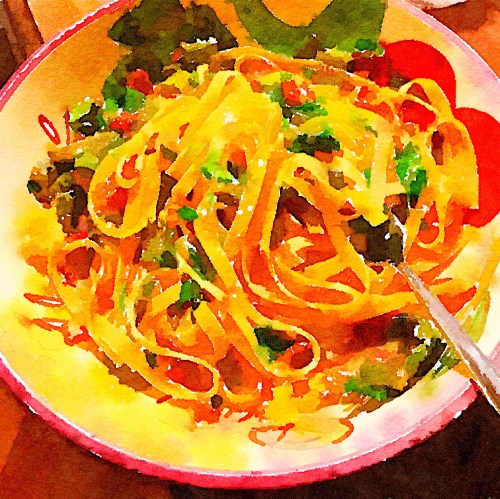 For most of the last 12 weeks the routine of our days was: get up before 6AM, feed the cat, pack breakfasts and lunches, drive to the train station, commute two hours one way, work a pretty-full day, leave one job and commute an hour to one or another of the cobbled-together gigs (and then sometime commute to another one), and meet for a train home arriving sometime between 9 and 10PM. Weekends, too. On a good day, we’d put something in a slow-cooker. On a less good day, we had some more-or-less convenient food in the freezer that could be augmented with relatively healthy side dishes that we’d batch-cooked or that took very little time to prepare. But since, to be perfectly honest, sometimes the 20 minutes it takes to steam a pot of rice and bake some chicken was just more than we had the emotional fortitude to endure.